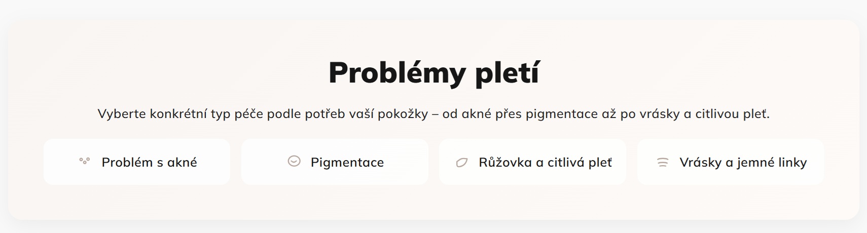 Prémiový benefit box je elegantní vizuální sekce, která zákazníkům rychle a přehledně představí hlavní benefity, klíčové složky produktu nebo důležité parametry vašich služeb.