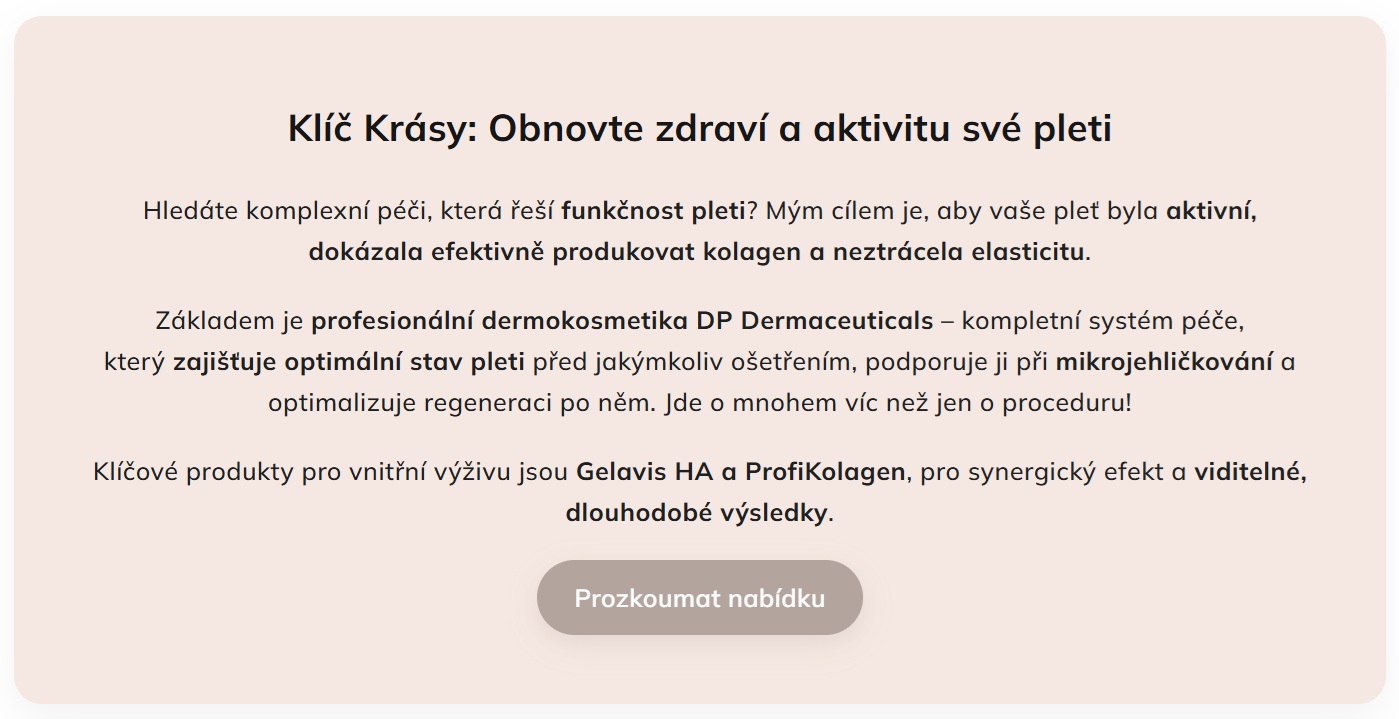 Vyladím typografii a mezery tak, aby sekce působila čistě a profesionálně.