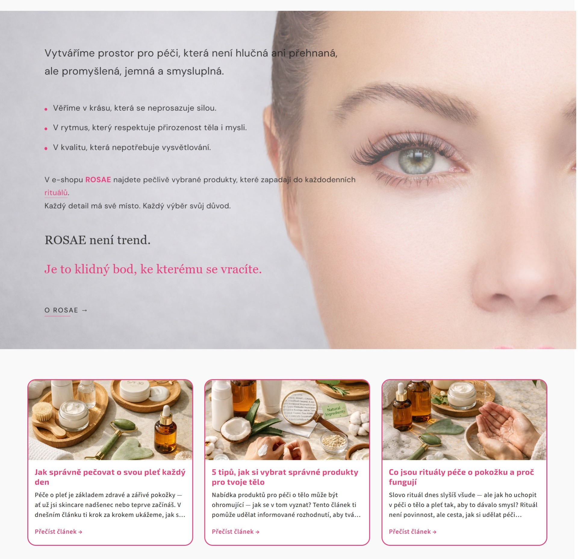 Rosae působí profesionálně, důvěryhodně a podporuje značky, které chtějí svou kosmetiku prezentovat s citem, estetikou a respektem k zákazníkům.
